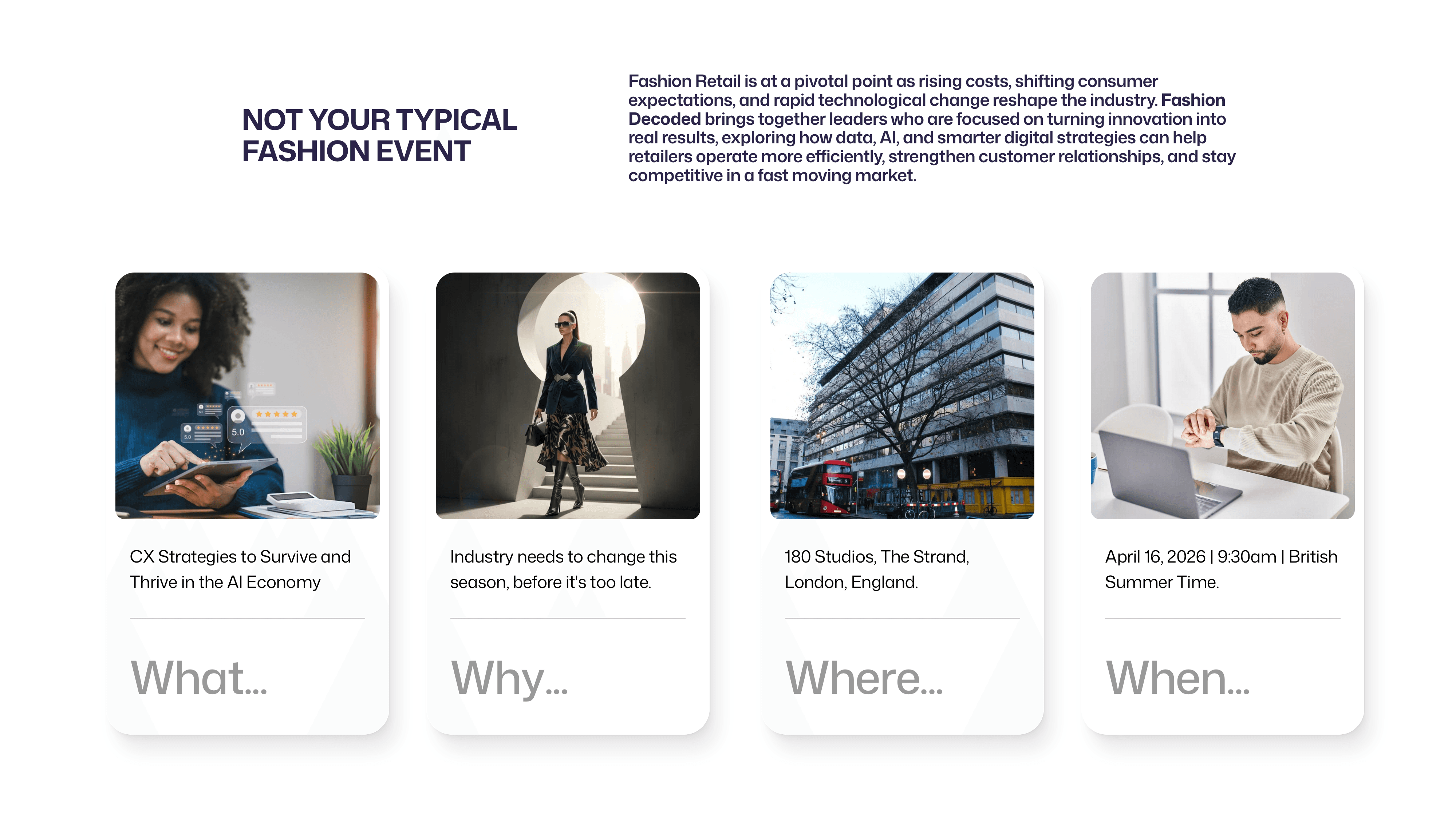 I designed the landing page for Mapp’s second annual Fashion Decoded event, transforming it from a static page into an AI-driven, motion first experience that reflected the brand’s focus on understanding why people buy fashion. The hero imagery was fully AI-generated, allowing for high-fidelity, human-centric visuals that aligned with Mapp’s Brand Fidelity in the Age of AI.
